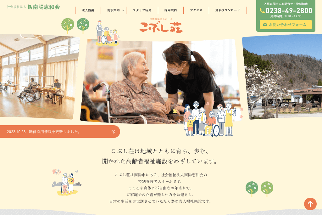 社会福祉法人南陽恵和会様 特別養護老人ホームこぶし荘 ウェブサイトリニューアル